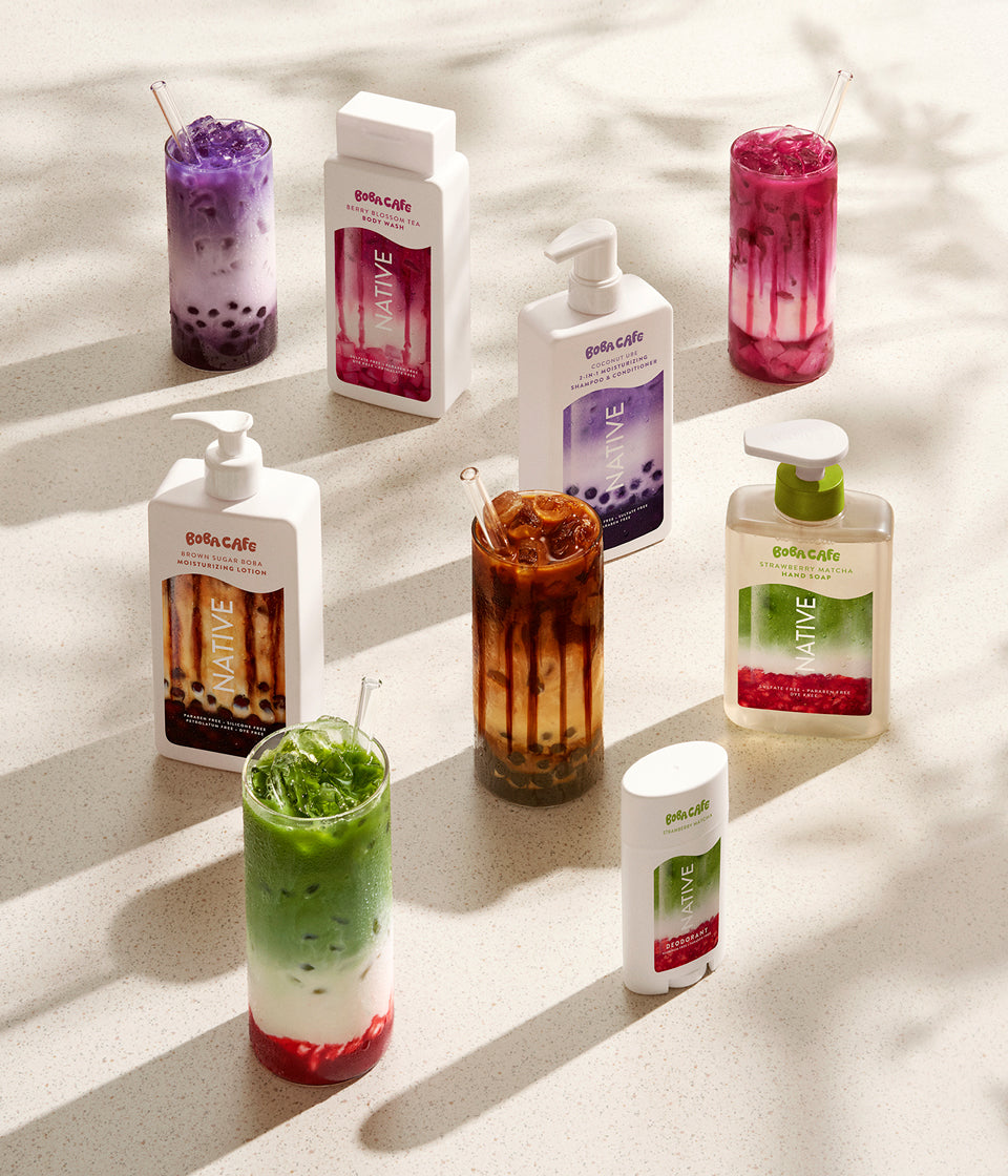 Welcome to Boba Cafe by Native: a joyful blend of clean, effective formulas and playful scents inspired by your favorite boba teas.