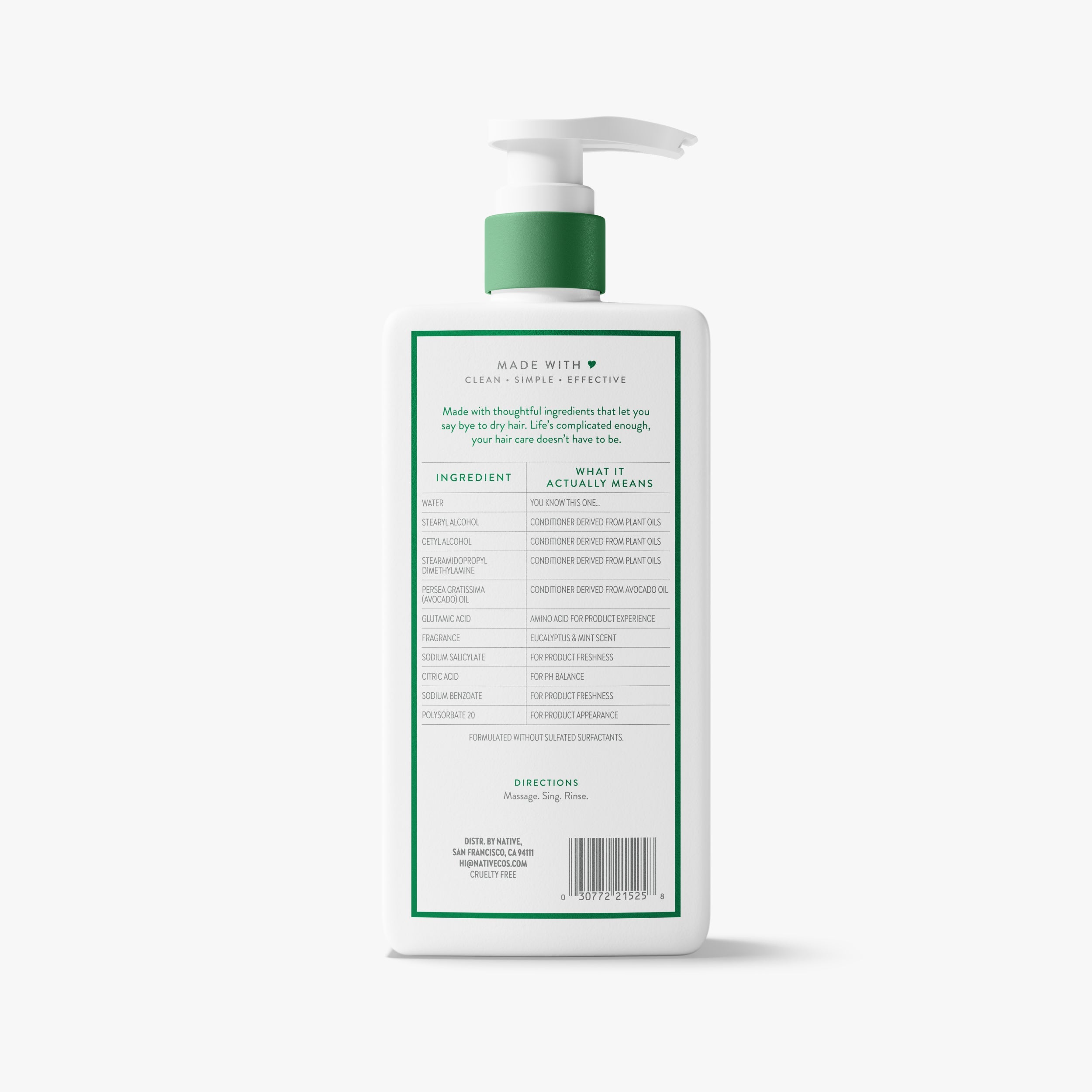 Thoughtfully formulated with no sulfates, silicones, parabens, or dyes.