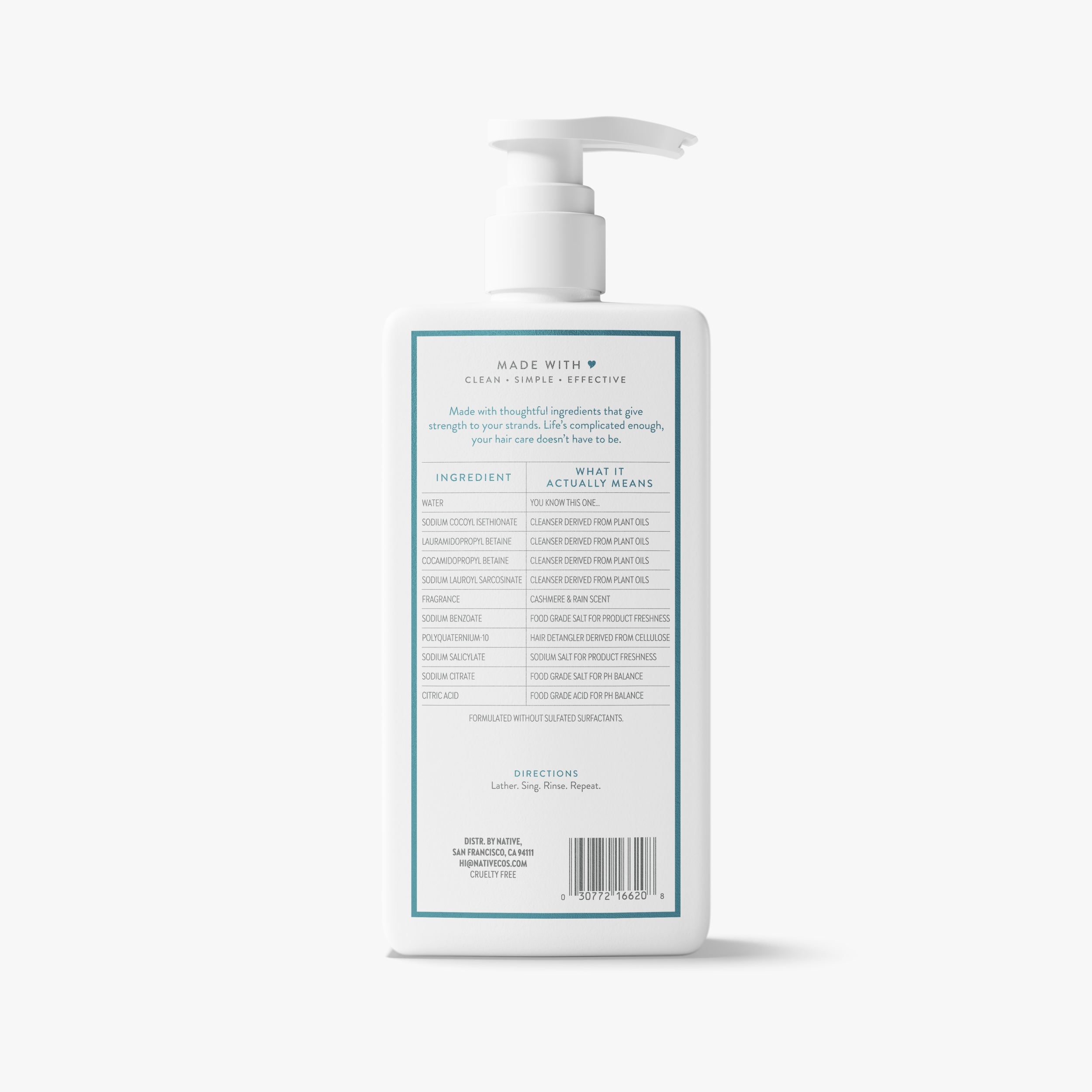 Thoughtfully formulated with no sulfates, silicones, parabens, or dyes.